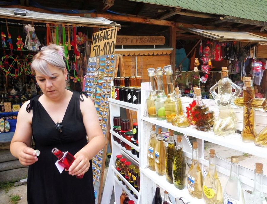 Na miejscu był tylko jeden autokar serbski z młodzieżą szkolną i chyba z 5 samochodów osobowych. Podobno z Polski autokary tam jeżdżą tylko z naszego biura podróży. Gdy zajechaliśmy to mogliśmy odświeżyć się w WC i degustować to co jest na zdjęciach. Oferowano też magnesy po kilka sztuk w cenie.