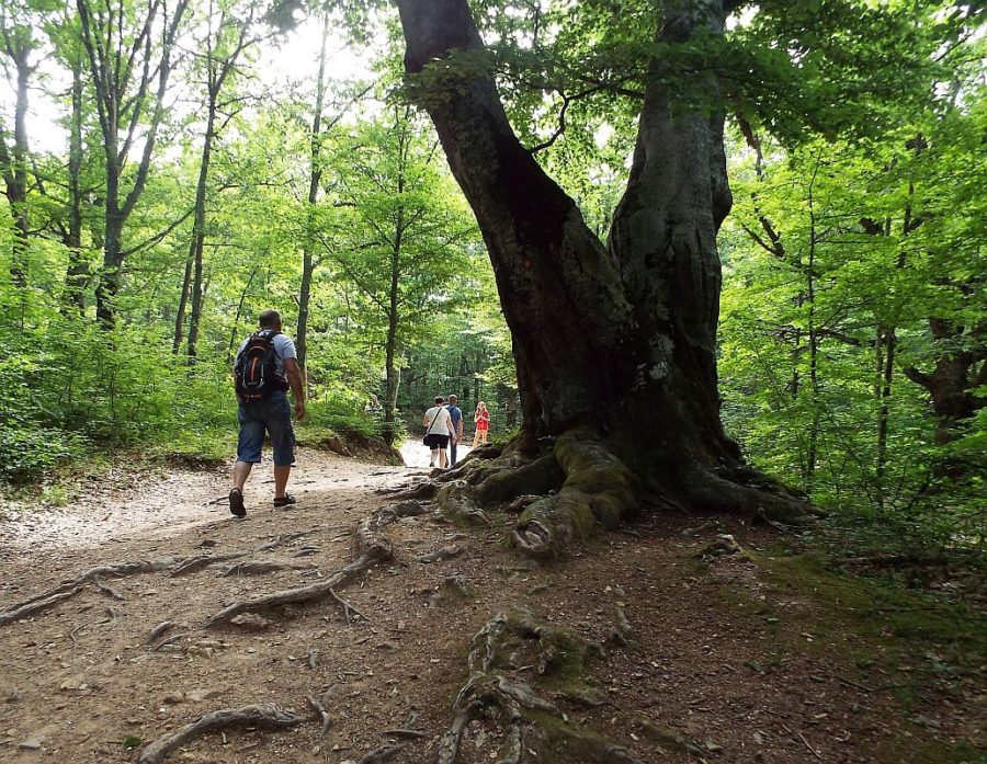 Każdy z nas przy bilecie dostał folder opisowy w językach serbskim i angielskim. Wchodzimy do lasu mijając rosnące dzikie grzyby, jakieś rzeźby ludzką ręką zrobione, jaskinie z której wypływa ruda woda. W pewnym miejscu płyną dwa strumienie niewiele od siebie oddalone. Dochodzimy do Czerwonego Źródła (Crveno Vrelo). Wypływająca z niego woda zawiera dużo związków żelaza, dlatego ma rudy, rdzawy kolor. Z ziemi wydobywają się bąbelki. W okolicy znajduje się drugie źródło zwane Đavolja voda (Woda Diabła) o silnym kwaśnym współczynniku. Podobno działa leczniczo na skórę.