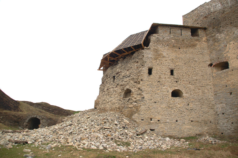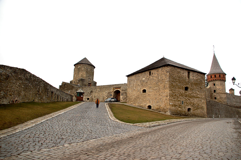 Kamienieckiej twierdzy i jej historii poświęcono już wiele opracowań naukowych oraz niezliczone inne publikacje. Jest też opisana, chociaż bardzo skrótowo, w przewodnikach. Zainteresowanych szczegółami odsyłam do ich lektury. Wspomnę tylko, że pierwsze umocnienia na wspomnianym przesmyku między nurtami rzeki wznoszono już w XI-XII wiekach. Natomiast zachowaną do naszych czasów, przynajmniej w podstawowym kształcie, fortecę, od XIV do XVII w. Zbudowano ją na przedłużeniu mostu zwodzonego w bramie miejskiej, później zastąpionego stałym. I funkcjonowała ona do 1812 roku, kiedy straciła status budowli obronnej.