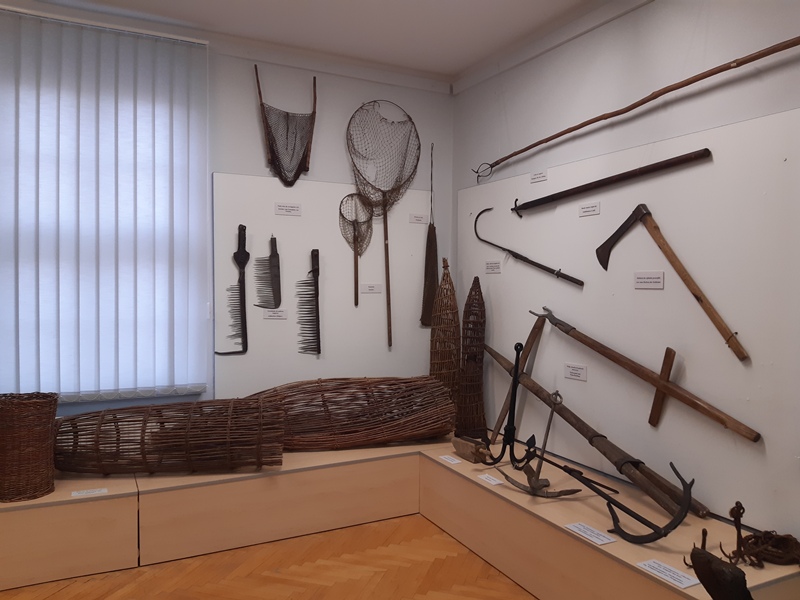 * Dawne narzędzia połowowe. Rybołówstwo jest jednym z najstarszych zajęć człowieka. Wystawa pokazuje różne narzędzia rybaków.