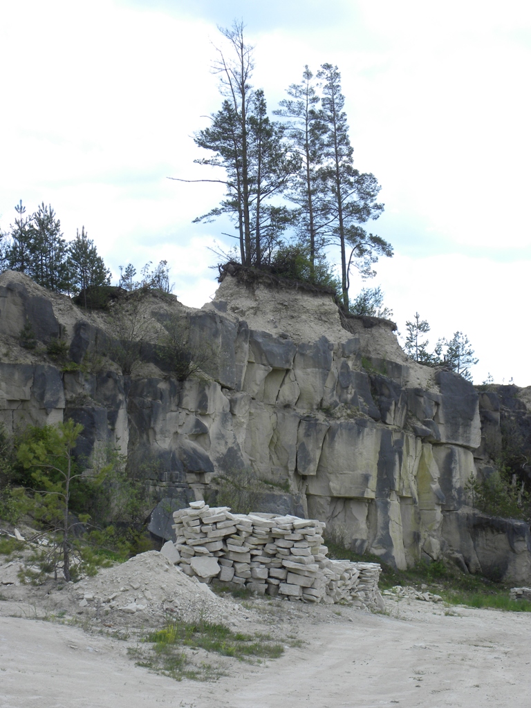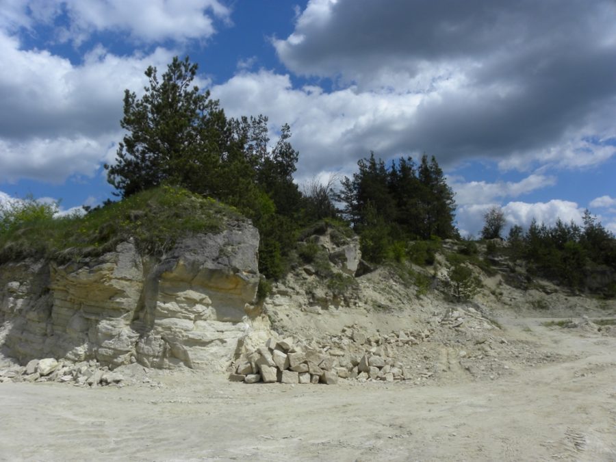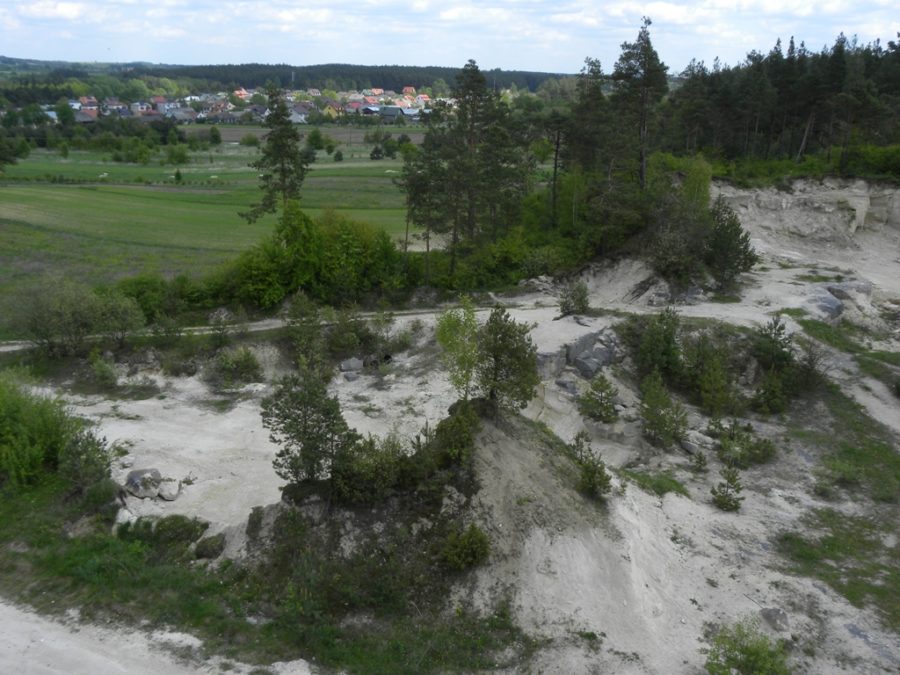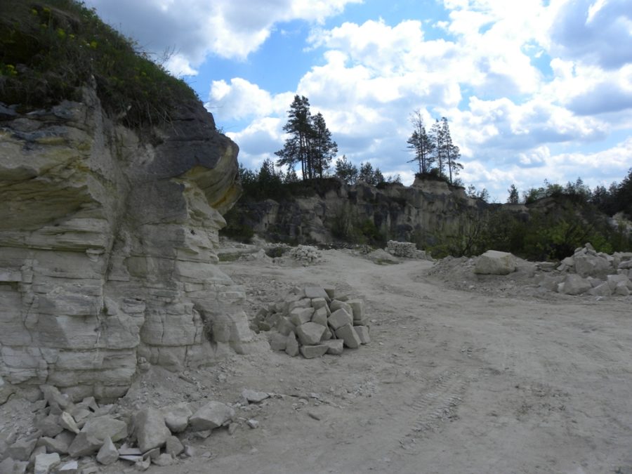 Kamieniołom nosi nazwę Babia Dolina i jest ogromny, największy na Roztoczu Środkowym. Wydobywano tu piaskowce i wapienie trzeciorzędowe od XVIII wieku. Kamień służył jako materiał budowlany oraz jako tworzywo dla miejscowych rzeźbiarzy ? tych dawnych i tych współczesnych. Sporo dzieł stoi w mieście i okolicy ? nie bardzo mi się podobały. Natomiast spacer po kamieniołomach może być ciekawym odkryciem geologicznym. W skałach łatwo znaleźć skamieniałe szczątki i odciski stworzeń sprzed milionów lat. Nawet w jednym z kamieni budujących wieżę (na prawo od wejścia) znalazłam pradawną muszelkę. Prowadzi tędy geologiczny szlak tematyczny po Roztoczu.