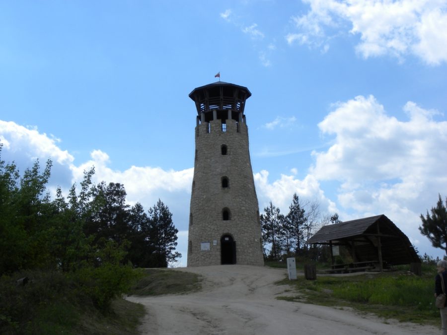 Wieża stanęła tu w 2011 roku. Jej masa całkowita wynosi 550 ton, z czego 370 ton to miejscowy wapień józefowski ? czytam na tablicy informacyjnej wewnątrz budowli. ? Jej średnica u podstawy wynosi 7 m , wysokość od poziomu gruntu 18,5 metra. Taras widokowy znajduje się na wysokości 15 metrów od ziemi i niespełna 280 metrów nad poziomem morza. Z wieży roztacza się ciekawy widok: w dali lasy Puszczy Solskiej, bliżej Józefów z synagogą, rynkiem i kościołem, u stóp ? kamieniołom. Nieczynny już podobno, ale w jego zachodnim krańcu widziałam zwały zupełnie świeżego urobku.