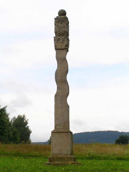Z różnych budowli, o które przewodniki każą zaczepić oko temu, kto zwiedza Stronie Śląskie, najbardziej podobał mi się – słup wotywny. Wysoką kolumnę ufundował w 1672 r. sędzia nazwiskiem Wolf. Stała kiedyś na rozstaju dróg, ale gdy rozstaje stało się poważnym skrzyżowaniem, przesunięto ją w stronę pobliskiego kościoła.