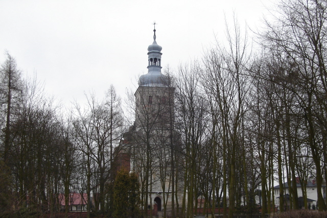 Na skarpie po lewej stronie jest cmentarz. Dalej rozciąga się widok na nizinę ciechocińską i wijącą się Wisłę. Po prawej stronie pola. Przy skrzyżowaniu dróg jest plac kościelny, a na nim kościół parafialny p. w. Wszystkich Świętych i św. Hieronima. Został postawiony w 1597 roku w miejscu dawnego drewnianego, zniszczonego przez Krzyżaków. Budowano go długo, konsekracji dokonano w 1627 roku. Jest murowany i dość ciekawy. Ma oryginalną fasadę i wysoką wieżę z zegarem. Góruje nad miejscowością.