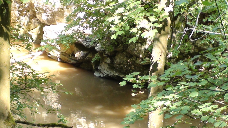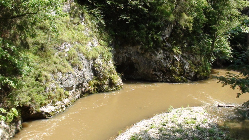 Co chwilę oglądamy wyłaniające się wapienne skałki Kazalnicy, Igły i Tomaszowskiego Widoku. Mijamy kolejne rozdroża i przechodzimy kolejne mostki. Mijamy Biały Potok ? ujście i wspólnie z zielonym szlakiem podchodzimy do Białego Potoku ? rozdroża, a dalej w kilka minut osiągamy  rozdroże pod Tomaszowskim Widokiem. Biały Potok faktycznie ma adekwatną nazwę do swojego wyglądu. Woda bystra i czysta wpada do zielonej wody Hornadu.