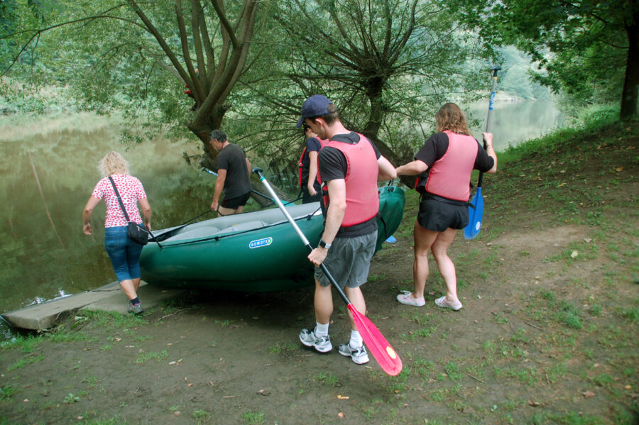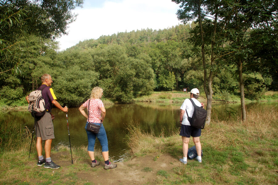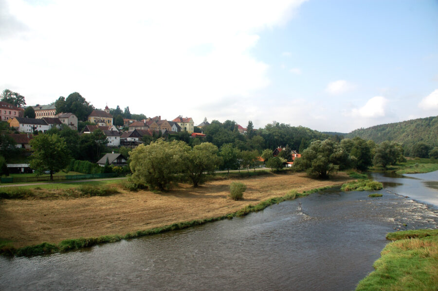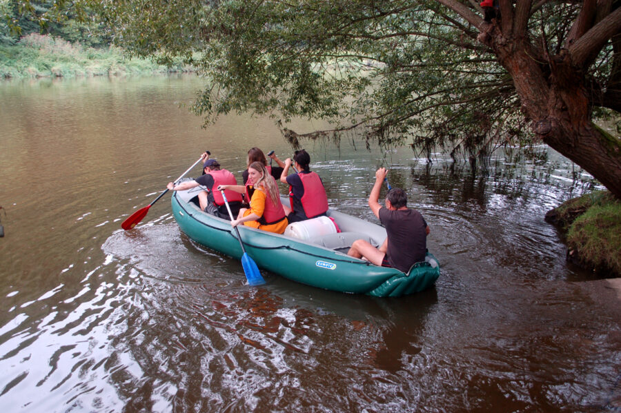 Z kempingu Kobylka, w którym spędziliśmy noc, kilkoro z nas popłynęło pontonem w czterogodzinny rejs do kempingu U Mloka, z przerwą obiadową na lewym brzegu. Ja odbyłem ciekawy dwukilometrowy spacer po wysokim, zalesionym brzegu Berounki, miejscami przez wykroty i powalone drzewa, miejscami z widokiem na nurt. Oglądałem, jak wysoko sięgał niedawno poziom tej, na co dzień spokojnej, rzeki.