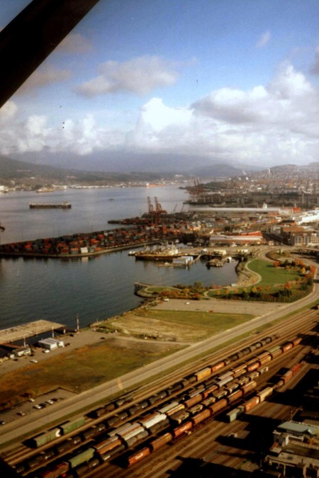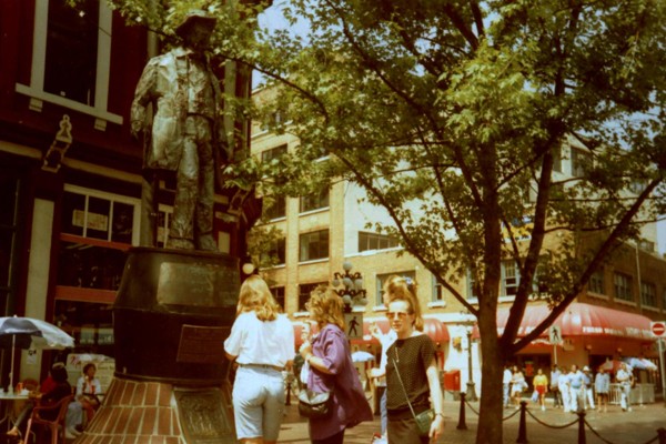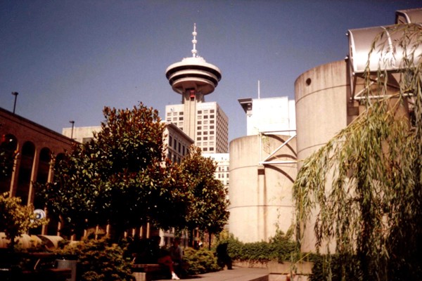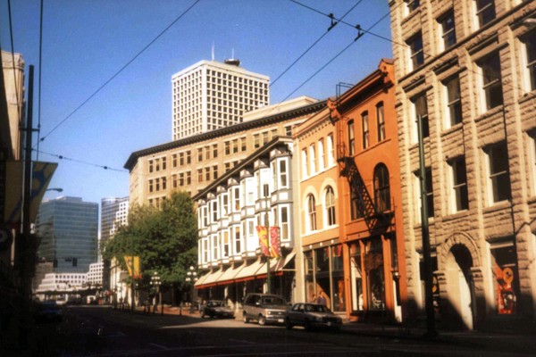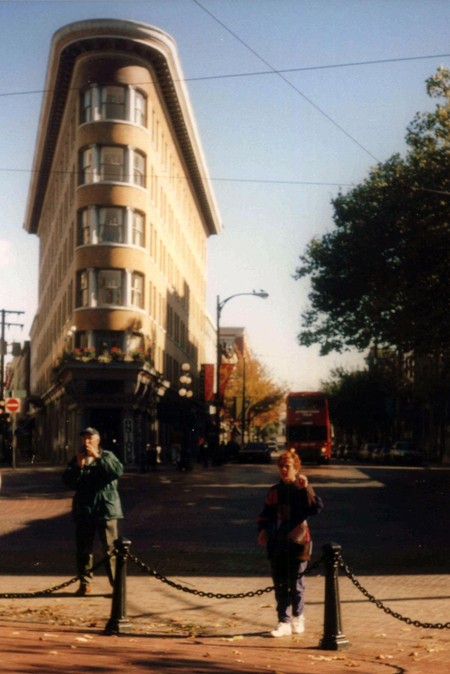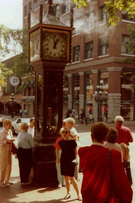 Od Pacyfiku oddziela miasto Wyspa Vancouver ze stolicą Kolumbii Brytyjskiej – Victorią. Vancouver otrzymało prawa miejskie w 1886 roku po dwudziestu latach osadnictwa brytyjskiego. Zalążkiem, miejscem narodzin – owym birthplace – była osada nazwana oficjalnie w 1870 r. Granville, położona nad Zatoką Burrard. Gdy w 1867 r. zszedł na ląd hotelarz Jack Deighton, z baryłką whisky pod pachą, i założył saloon serwując w nim ten trunek, do osady przylgnęłą nazwa – Gastown od przydomka właściciela baru „Gassy Jack” (podchmielony?). I tak zostało.Pomnik „Gassy Jacka” (zdjęcie 1 w galerii) ustawiono na Maple Tree Square. Jego postać stoi na beczce, twarzą w stronę ciekawego architektonicznie budynku „Hotel Europa” (zdjęcie 2). Zamówiony przez hotelarza, został wybudowany w latach 1908-1909 na trójkątnej parceli w stylu zwanym „flatiron” przez podobieństwo bryły budynku do żelazka (niektórzy uważają, że przypomina książkę).
