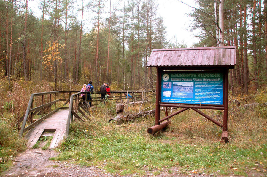 Droga do tego rezerwatu utworzonego na terenie byłej kopalni glinki ceramicznej i gliny wydobywanej do roku 1977 dla cegielni w Sołtykowie, ma status leśnej, szutrowej. Odchodzi od szosy nr 42 z Kielc w stronę Płaczkowa. Są na niej liczne ślady opon, ale nie da się nią dojechać do początku szlaku wytyczonego w rezerwacie. Trzeba przejść pieszo, na szczęście przez ładny las. Sam szlak turystyczny prowadzi przez teren bagnisty, częściowo długim, drewnianym pomostem.