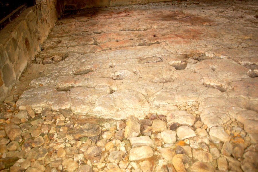 Tropy dinozaurów, i to kilku gatunków, odciśnięte zostały przez te zwierzęta w błocku, które następnie stwardniało, pokryte zostało kolejną warstwą naniesionego przez wodę piasku oraz gliny. I tak przetrwały tyle milionów lat, aż do ich odkrycia przez współczesnych naukowców. Są to tropy drapieżnych, dwunożnych dinozaurów teropodów (Kayenatapus) oraz czworonożnych dinozaurów roślinożernych zauropodów (Parabrontopodus). Odkrycie stało się światowym ewenementem, gdyż pozwalało stwierdzić, że przynajmniej małe osobniki tego gatunku prowadziły życie stadne. Ponadto natrafiono na jeden ślad dużego – ma on wielkość 60 cm – drapieżnego allozauroida. A w 1999 r., obok wyrobiska gliny, odkryto także wyraźne tropy jeszcze dwóch gatunków dinozaurów: dilofozaura i wulkanodona.