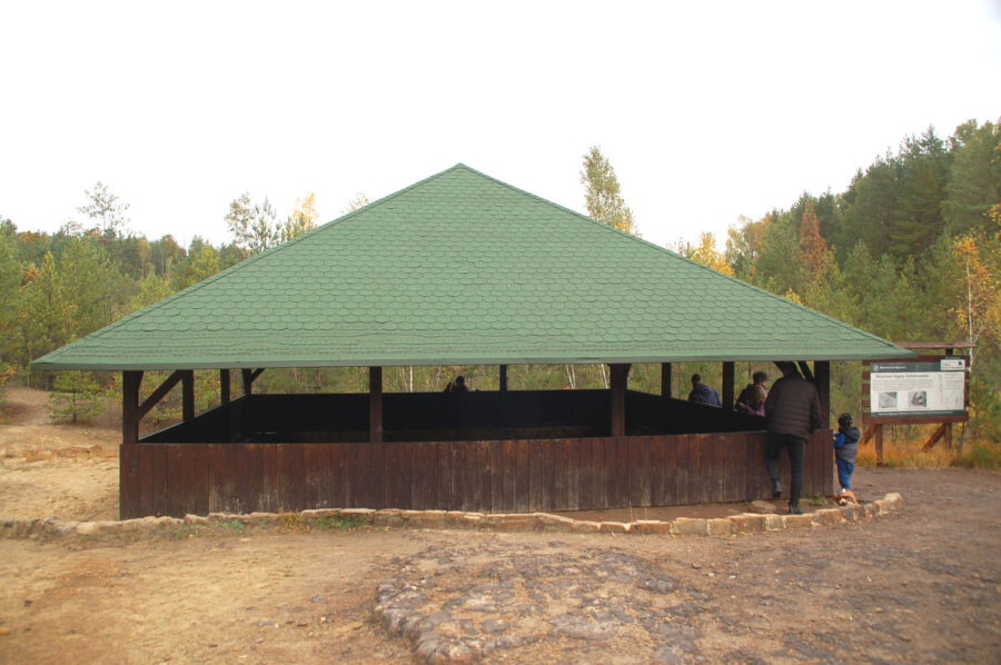 Po ostatnich deszczach wejście stanowi problem. Nie da się bez zanurzenia butów w błocku. Dalej jest już lepiej. Główne skamieniałe ślady dinozaurów nakryte zostały wiatą z dużym dachem i otoczone kilkudziesięciocentymetrowym płotkiem. Szczerze mówiąc są na oko niezbyt interesujące. Ważny jest jednak fakt pobytu w miejscu tak znaczącym dla nauki. Stojące w pobliżu tablice zawierają sporo informacji na temat rezerwatu oraz tropów poszczególnych gatunków dinozaurów.
