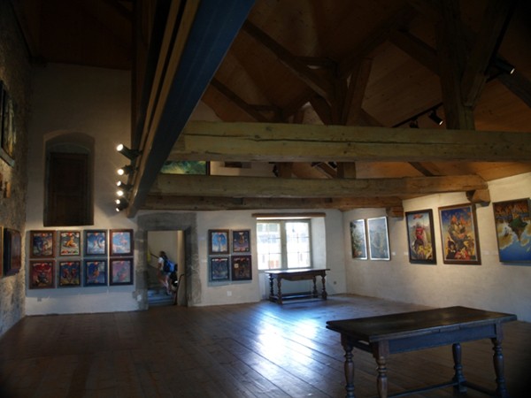 I widoki. Z każdego okna i z każdej galerii, na cztery strony świata. Zielone połacie wzgórz i pasma górskie w oddali. U podnóża góry zamkowej w połowie XIII w. założony został kościół p.w. św. Théodule z przykościelnym cmentarzem.