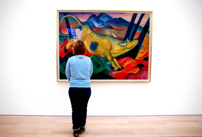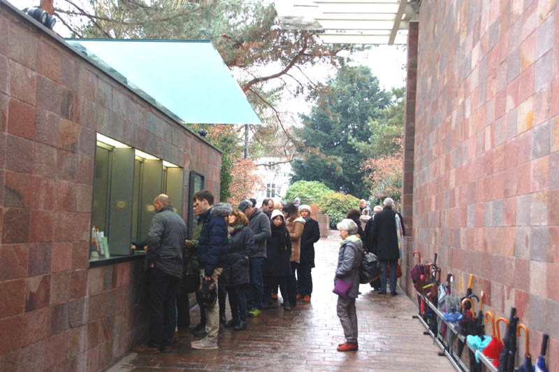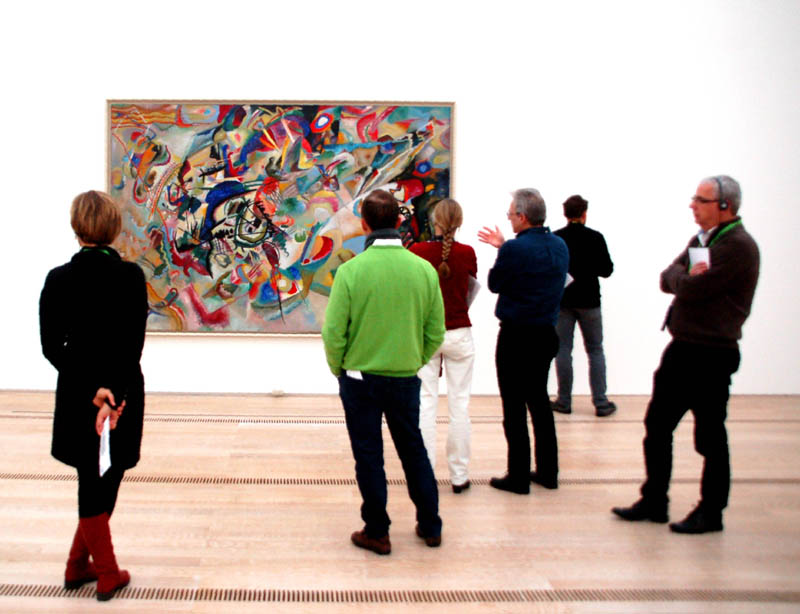 Odwiedziłem ją w niedzielne przedpołudnie. W kolejce do kasy stało kilka – kilkanaście osób. W salach wystawowych było pełno, chociaż, na szczęście, bez tłumów uniemożliwiających spokojne oglądanie obrazów, rzeźb i instalacji. Wśród zwiedzających sporo było osób starszych, ale również młodzieży i to z kilku kontynentów, w tym z Dalekiego Wschodu, naprawdę interesujących się sztuką. Wsłuchiwali się przed poszczególnymi eksponatami w informacje płynące ze słuchawek i czytających informacje zawarte w bezpłatnych folderach.