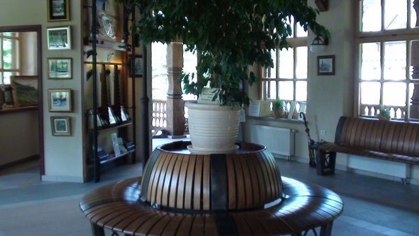 Nowa pijalnia jest drewniana, na planie prostokąta. Budynek otacza taras zakryty półkolistym dachem wspartym na drewnianych słupach. Przed wejściem do wnętrza znajduje się taras prostokątny, a na nim są ławeczki. Wnętrze pijalni jest bardzo gustownie urządzone. Często odbywają się tutaj wernisaże. Przed pijalnią ładna fontanna, a wokół niej sporo ławeczek dla kuracjuszy.
