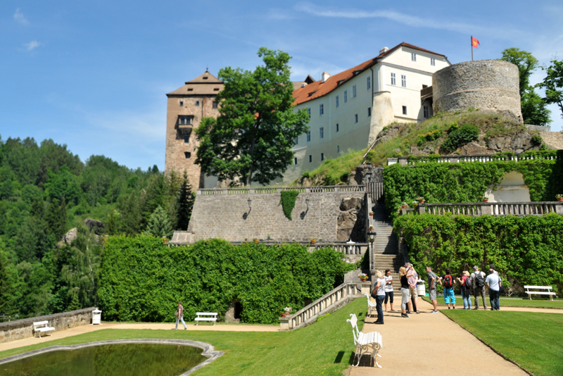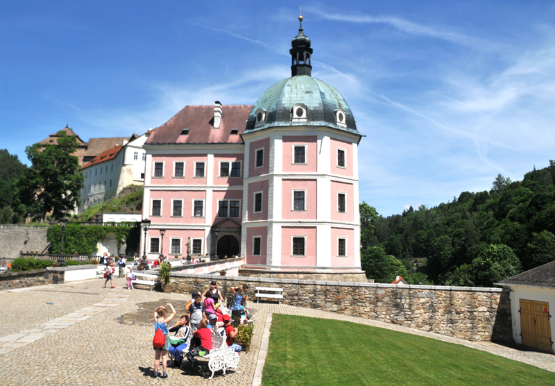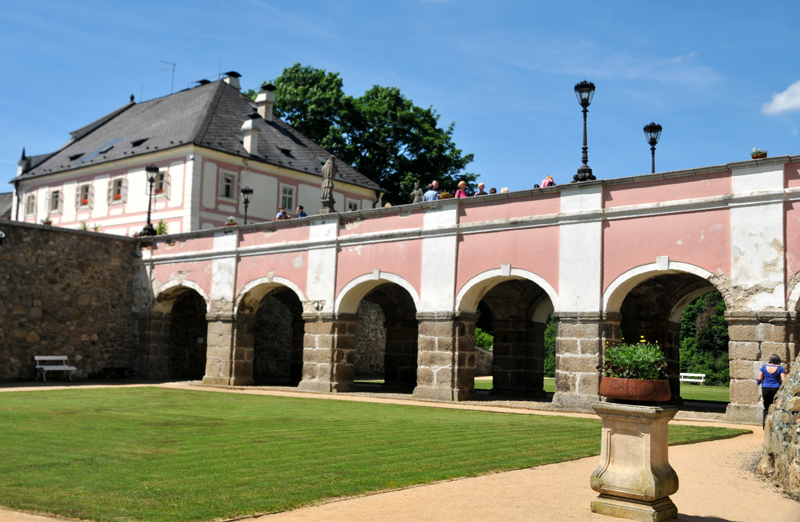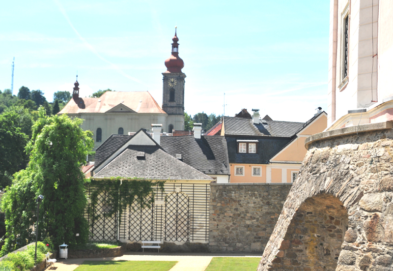 I to już właściwie wszystko. Z dawnego żydowskiego getta, z tradycjami od XIV w. nie zachowało się praktycznie nic. A była to dzielnica przylegająca do rynku, z trzema bramami, z których jedna stanowi obecnie fragment domu nr 19. Była tam oczywiście również synagoga oraz mykwa (rytualna łaźnia). Zaś kirkut (cmentarz), o którym pierwsza pisana wzmianka pochodzi z 1662 roku, położony był na południowy zachód od miasta. Wszystko zniszczyli Niemcy po przyłączeniu miasteczka w 1938 r. do III Rzeszy w ramach tzw. Sudetenlandu ? Kraju Sudeckiego. Ocalał tylko jeden nagrobek barokowy i dwa klasycystyczne, przeniesione na zamek. I prawdę powiedziawszy tylko Bečovski zamek, a zwłaszcza znajdujący się w nim relikwiarz św. Maura (i o relikwiarzu, i o zamku, piszę osobno), jest magnesem przyciągającym tutaj dziesiątki tysięcy turystów. Jest to jeden z większych oraz najlepiej zachowanych czeskich kompleksów zamkowych.